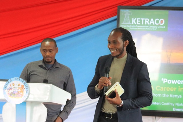 Eng. Godfrey Njoka of KETRACO addressing participants on the industry skills required